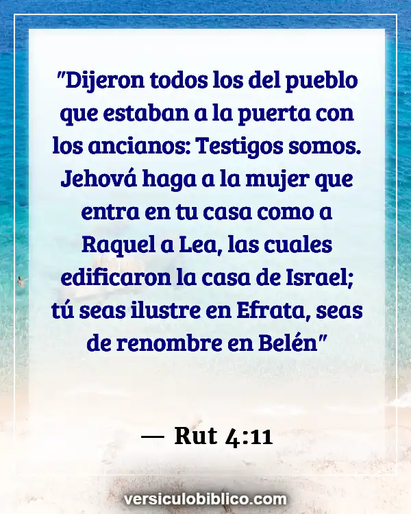 “Dijeron todos los del pueblo que estaban a la puerta con los ancianos: Testigos somos. Jehová haga a la mujer que entra en tu casa como a Raquel a Lea, las cuales edificaron la casa de Israel; tú seas ilustre en Efrata, seas de renombre en Belén”